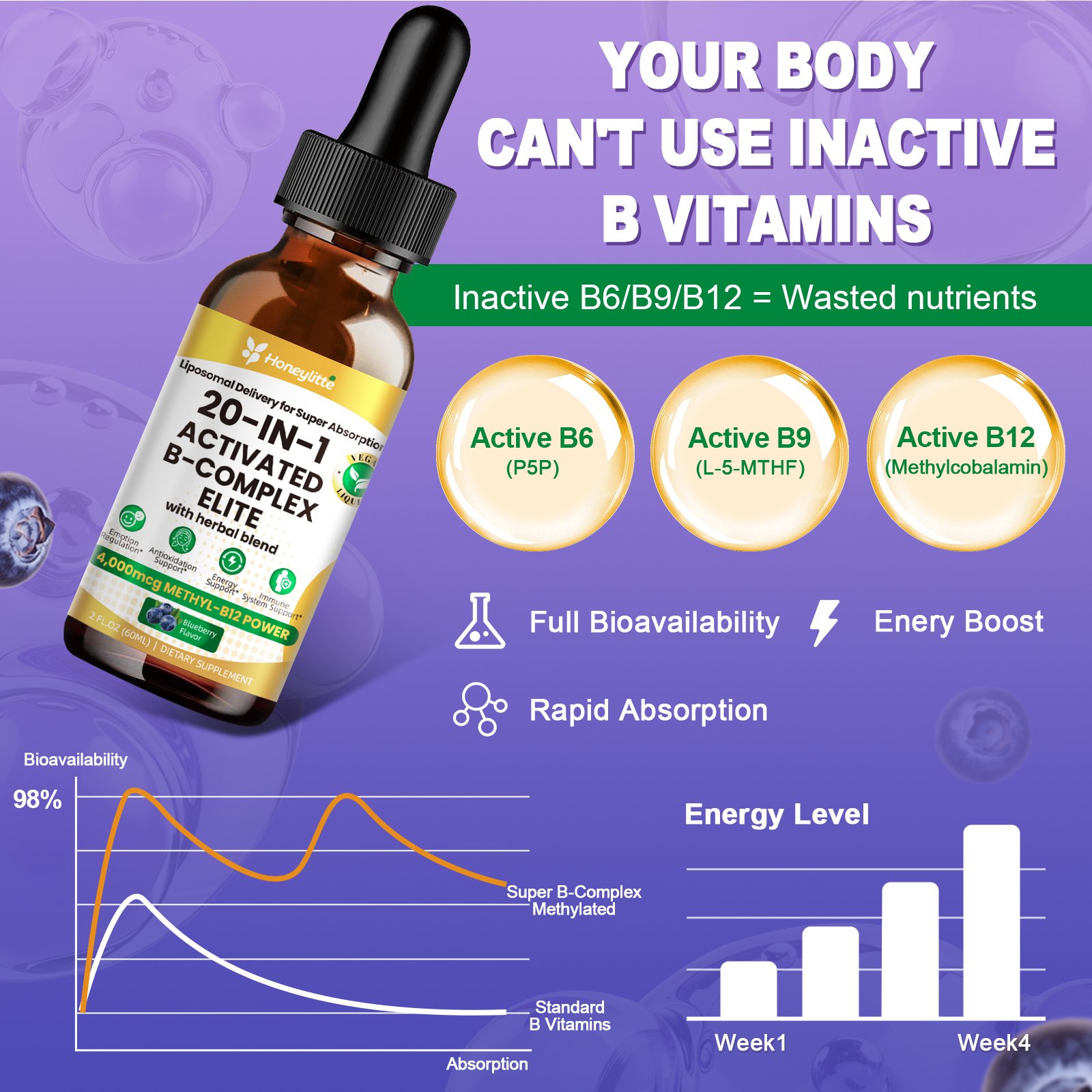 Alpha Lipoic Acid Neuropathy Supplements – with 600mg R-Alpha Lipoic Acid, NAC, ALC, Active Vitamin B12 B1 B2 B6, Magnesium – for Nerve Heath, Liver Detox, Antioxidant & Mental Support