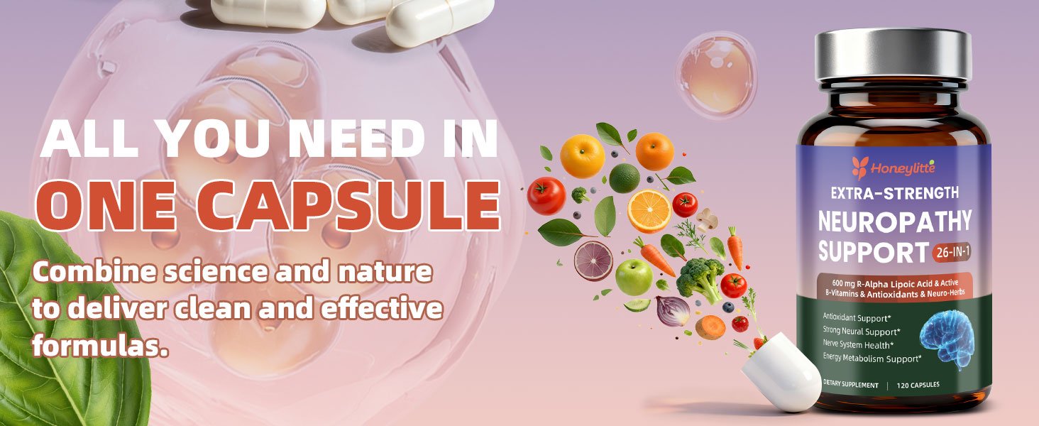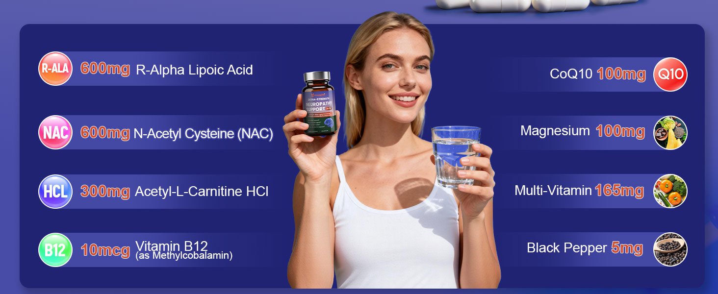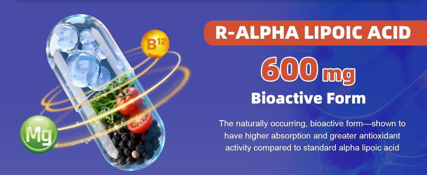 Alpha Lipoic Acid Neuropathy Supplements – with 600mg R-Alpha Lipoic Acid, NAC, ALC, Active Vitamin B12 B1 B2 B6, Magnesium – for Nerve Heath, Liver Detox, Antioxidant & Mental Support